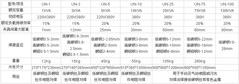 UN-3型对焊机,UN-3-5型组合式对焊机,UN-5型对焊机, UN-5-7型对焊机UN-5型对焊机,UN系列对焊机用电阻焊接法和闪光对焊法实现对低碳钢,中碳钢,高碳钢及有色金属的各种丝,棒,环,板,管等型材的